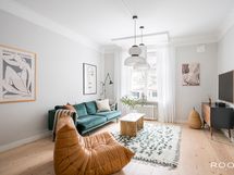 - Huoneistosta avautuvat näkymät kahteen suuntaan: olohuoneesta ja päämakuuhuoneesta Runeberginkadulle sekä keittiöstä sisäpihalle.