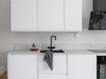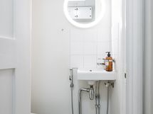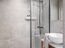 - Pesutilojen varusteet: Suihku, suihkuseinä, peilikaappi, pesuallas, allaskaappi ja pesukone (Kuuluu kauppaan). Pesutilojen kuvaus: Tyylikäs kylpyhuone on remontoitu syksyllä 2023. Seinissä on näyttävät suuret laatat, jotka luovat modernin ja viimeistellyn ilmeen. Laadukas allas ja allaskaappi ovat A.S. Helsingön mallistoa, ja suihku on Tapwellin ajattoman tyylikäs ratkaisu. Suihkuseinän toimitti Lasitehdas.