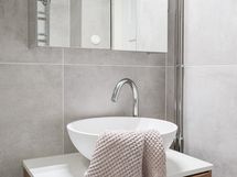 Kylpyhuoneesta löytyy myös käytännöllinen pyyhekuivain.