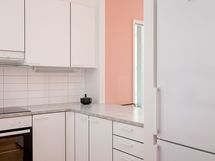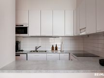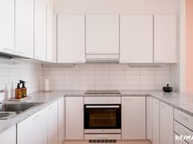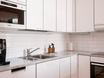- Keittiön varusteet: Erillisuuni, liesi, liesituuletin, astianpesukone ja jääkaappipakastin. Liesi: Keraaminen liesi. Työtason materiaali: Laminaatti.