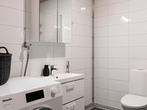 - Pesutilojen varusteet: Peilikaappi, pesuallas, allaskaappi, pesukoneliitäntä, suihkuseinä, wc-istuin, suihku, lattialämmitys ja bidee-suihku.
