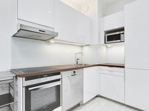 - Tilaa isolle ruokapöydälle, Paljon kaappitilaa, Paljon työskentelytilaa, Laminaattitasot, Astianpesukone, Integroidut koneet, Keraaminen liesi, Liesituuletin, Jää-pakastinkaappi, Kaasuvaraus