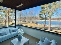- Teimme kattavan pintaremontin muuttaessamme kohteeseen kesällä 2021. Tarkoittaa käytännössä kaikkien pintojen maalaus/tapetointi, yläkerran makuuhuoneiden väliseinän purku ja toisen oviaukon muuttaminen seinäksi, sekä alakerran kiinteän vitriini-/paneeliseinän asennus. Lisäksi 2022 aikana perusteellinen ja kattava pihan kunnostus maarakenteineen. Samassa yhteydessä kaikki terassilaudoitukset uusittiin Siperian lehtikuuseen (ei keskikerroksen lasitettu parveke, joka edelleen kunnossa). Hiekkarannalle tuotu lisää hiekkaa 2024.