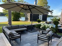 - Upea näkymä suoraan merelle ja omaan rantaan (länsi-luode). Parvekkeet sijaitsevat molemmilla puolilla taloa, jolloin aurinkoinen piste löytyy käytännössä aina. Iltapäivän ja illan aurinko valaisee takapihaa ja rantaa noin klo 13-22 välisen ajan.