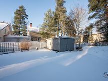 Asuintilat kolmessa kerroksessa noin 120 m2 ja tämän lisäksi muita tiloja kuten teknistä tilaa ja autotalli/var. noin 40 m2. Varsinaista rakennusoikeutta myydään arviolta 120 kem2 (tarkistusmitataan) joka vastaa arviolta talon kahden asuinkerroksen viemää alaa (kellari ei vie rakennusoikeutta).