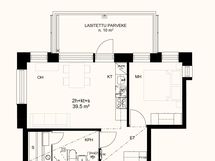 39,5m2 + 10m2 parveke