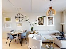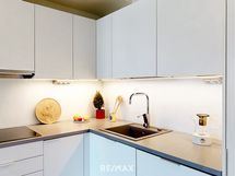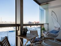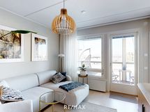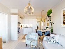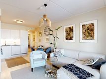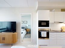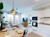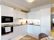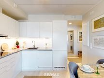 - Keittiön varusteet: Jääkaappipakastin, erillisuuni, liesi, liesituuletin, mikroaaltouuni ja astianpesukone. Liesi: Induktioliesi.