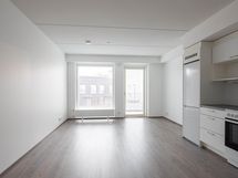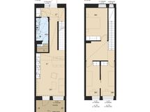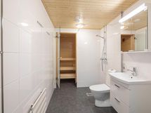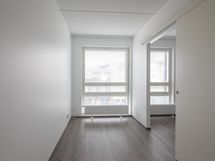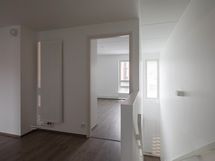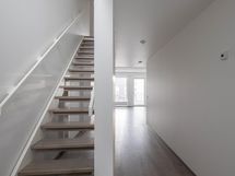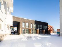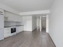 Saunallinen rivitalohuoneisto kahdessa tasossa, alakerrassa terassi. Yläkerrassa aulatila vaikkapa oleskelutilaksi, yksi iso makuuhuone, jossa hyvin kaappitilaa. Kaksi muuta makuuhuonetta on erotettu liukuovella.