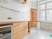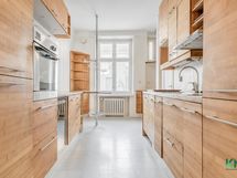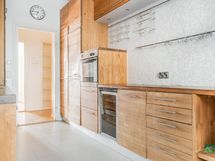 - Liesitaso, liesituuletin, astianpesukone, viinikaappi (toimintahäiriö), kiinteät kaapistot, jääkaappi/pakastin. Lattia: Laatta. Seinät: Maalattu. Välitila laatta.