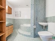 - Kylpyhuone: suihku, kylpyamme, wc-istuin, 2x käsienpesuallas, allaskaappi, peili, pesukoneliitäntä, pyyhekuivain, kylpyhuonekaapistot | Erillinen wc: wc-istuin, käsienpesuallas, bidee-suihku, peili, kaappi. Lattia: Laatta. Seinät: Laatta