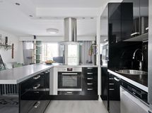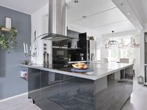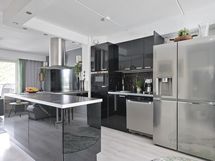 - Keittiön varusteet: Jääkaappipakastin, liesituuletin, liesi, uuni, mikroaaltouuni ja astianpesukone. Liesi: Induktioliesi. Keittiön on toteutettu tyylikkäästi ja sijoittuu käytännöllisesti olohuoneen yhteyteen.