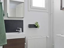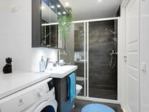 - Pesutilojen varusteet: Suihkukaappi, pesukoneliitäntä, peilikaappi, pesuallas, allaskaappi ja bidee-suihku. Pesutilojen kuvaus: Tyylikkäästi remontoitu kylpyhuone ja sauna sijaitsevat asunnon toisessa kerroksessa. Erillisen WC:n varusteet: WC-istuin, peili, pesuallas, allaskaappi ja bidee-suihku. Erillisen WC:n kuvaus: Alakerrassa erillinen wc.