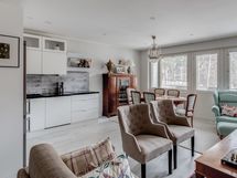 - Keittiön varusteet: Jääkaappipakastin, uuni, liesituuletin, liesi ja astianpesukone