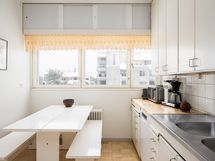 - Varusteet: astianpesukone, jääkaappipakastin. Työtaso: puutaso, metalli/rosteritaso. Liesi: kaasuliesi, liesituuletin hormilla