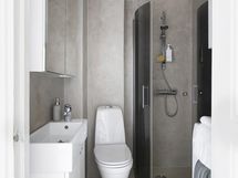 - Pesutilojen kuvaus: Suihku, suihkuseinät, wc-istuin, peilikaappi, hana, allas, allaskaappi, kaappi, lattialämmitys. Pesukoneliitäntä. Seinät ja lattia mikrosementtiä.