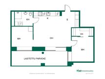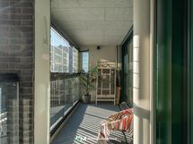 - sisään vedetty, lasitettu. Parvekkeen suunta: kaakko
