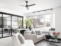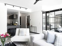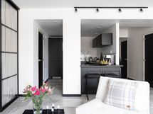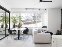 Lasiseinät tilanjakajaksi olohuoneeseen. TALOYHTIÖSSÄ: 2026 huoneistokohtaisten palovaroittimien asennus
