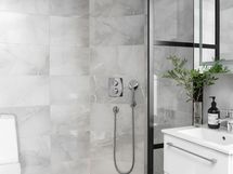 - Pesutilojen kuvaus: Sadesuihku ja käsisuihku, suihkuseinä, wc-istuin, peilikaappi, allaslaatikosto,pyyhekuivain, lattialämmitys. Vihta-lasiovi.