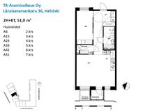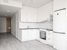 Keittiö ja olohuone ovat yhtenäistä avaraa tilaa, josta pääsee asunnon pienelle lasitetulle parvekkeelle. Asunto on läpitalon huoneisto, jossa on ikkunoita kahteen ilmansuuntaan. Asunnossa on laminaattilattiat, ja kylpyhuone puolestaan on laatoitettu. Irtaimistovarasto sijaitsee kätevästi asunnon yhteydessä, jonka lisäksi makuuhuoneessa on mukavasti kaappitilaa.