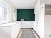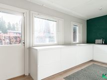 - Täyskorkea jääkaappi, täyskorkea pakastin, erillisuuni, induktioliesitaso, liesituuletin, astianpesukone, mikro. Integroidut kodinkoneet. Runsaasti säilytys- ja laskutilaa.