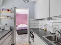 - Keittiön varusteet: Jääkaappipakastin, astianpesukone, erillisuuni, liesi ja liesituuletin. Liesi: Induktioliesi.