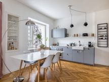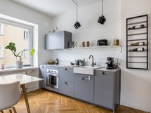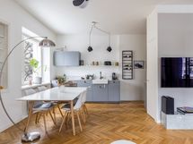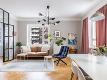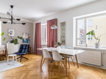 Tämä kaunis kolmannessa kerroksessa sijaitseva asunto on arvostetun arkkitehtitoimiston suunnittelema upea koti, jossa kaikki yksityiskohdat on mietitty tarkkaan. Nerokkaasti muokattu pohja on toimiva ja lisää merkittävästi tilan ja valon tuntua. Lattiaan on asennettu kalanruotoparketti, joka on elegantti ja erityisen kestävä. Katto- ja seinäpinnat on tasoitettu, maalattu ja huoneiston sähköt uusittu. Vanha keittiö sai väistyä uuden tieltä, jossa ajattomat materiaalit, kestävät keraamiset tasot ja runsaat kaappitilat helpottavat arkea. Keittiöstä löytyy myös aamiaiskaappi johon saat kätevästi keittiön pienemmät kodinkoneet. Myös äänieristykseen on panostettu ja esimerkiksi asunnon lattia sekä makuuhuoneen ja naapurin välinen seinä on äänieristetty.