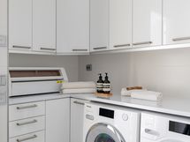 Kodissa on vaikuttava olohuone, jossa korkea huonekorkeus ja suuret ikkunapinnat luovat avaran ja valoisan tunnelman. Tilat jakautuvat useampaan tasoon, joita yhdistää oma hissi – arjen luksusta parhaimmillaan. Voit kulkea suoraan autotallista hissillä keittiöön, mikä tekee asumisesta poikkeuksellisen sujuvaa.