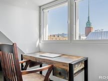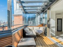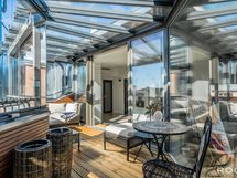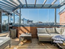 Lasitetulta terassilta aukeaa avarat kattonäkymät länteen kohti Clarion Hotellia.