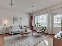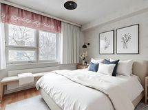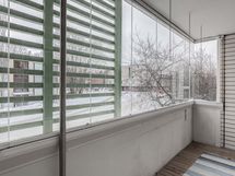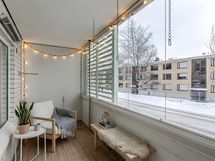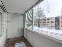 - Kulmahuoneisto noin itä-etelä-suuntiin. Lasitettu parveke on talon eteläisellä puolella.