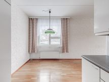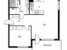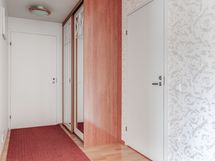 - Makuuhuoneessa ja eteisessä kaapistotilaa, lisäksi kylpyhuoneen korkea kaappi toimii pyykkihuollolle.