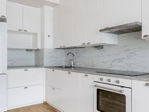 - Jääkaappi/pakastin, induktioliesitaso, kiertoilmauuni, astianpesukone, liesituuletin, kaapistot