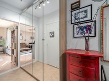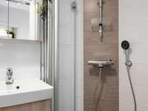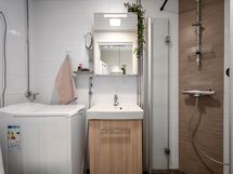 - Pesutilojen varusteet: WC-istuin, suihku, suihkuseinä, pesukone, pesukoneliitäntä, lattialämmitys, peilikaappi, pesuallas, allaskaappi ja bidee-suihku. Pesutilojen kuvaus: Kylpyhuone on remontoitu linjasaneerauksen yhteydessä 2015-2016.