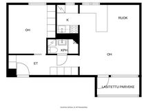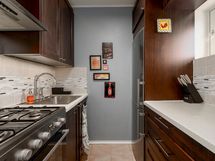 - Keittiön varusteet: Jääkaappipakastin, uuni ja liesi. Liesi: Kaasuliesi. Työtason materiaali: Laminaatti. Tässä keittiössä yhdistyvät käytännöllisyys ja tunnelma. Kaasuliesi tuo ripauksen klassista keittiötunnelmaa – täydellinen valinta sille, joka nauttii ruoanlaitosta sydämellä.