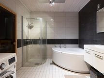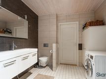 - Pesutilojen varusteet: WC-istuin, suihku, kylpyamme, suihkuseinä, pesukoneliitäntä, lattialämmitys, peili, pesuallas, allaskaappi ja bidee-suihku. Pesutilojen kuvaus: Kylpyhuone remontoitu 2007. Erillisten WC:n lukumäärä: 1. Erillisen WC:n varusteet: WC-istuin, bidee-suihku, peili, pesuallas, allaskaappi ja lattialämmitys. Erillisen WC:n kuvaus: Erillinen WC remontoitu 2007.