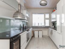 - Keittiön varusteet: Jääkaappi, uuni (Integroitu), liesi, liesituuletin ja astianpesukone (Integroitu). Liesi: Induktioliesi. Työtason materiaali: Kivi. Keittiö uusittu 2007.