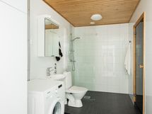 - Suihku + WC + Allaskaappi + Peilikaappi + Suihkuseinä + Lattialämmitys + Pesukoneliitäntä