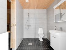 Asunnossa on laminaattilattiat, kylpytiloissa laatoitus, oma sauna ja parveke.