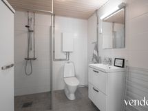 - Pesutilojen varusteet: Lattialämmitys, allaskaappi, bidee-suihku, pesuallas ja pesukoneliitäntä.