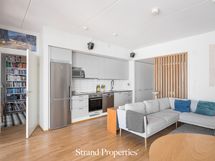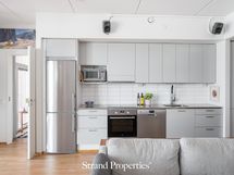 - Avokeittiö joka yhdistyy olohuoneeseen. Varustus: jääkaappi, pakastin, liesi, liesituuletin, uuni, keittiöallas, astianpesukone sekä kaapistot.