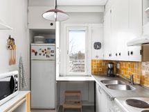 - Keittiön varusteet: Liesi ja jääkaappi. Alkuperäinen keittiö.