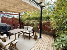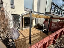 - Asuntoon kuuluu laudoitettu terassipiha.