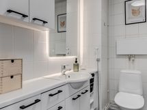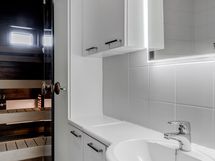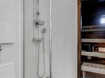 - Pesutilojen varusteet: WC-istuin, suihku, suihkuseinä, peilikaappi, pesuallas, lattialämmitys, allaskaappi ja bidee-suihku. Erillisten WC:n lukumäärä: 1. Erillisen WC:n varusteet: WC-istuin, pesukoneliitäntä, peilikaappi, pesuallas, allaskaappi ja bidee-suihku.