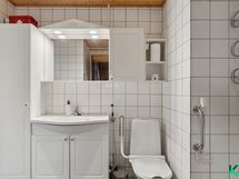 - Alakerran wc: allaskaappi, peilikaappi, pesukoneliitäntä, wc-istuin, vesikiertoinen pyyhekuivain ja lattialämmitys,kiinteä valaistus. Kylpyhuone: allaskaappi, peilikaappi, Wc-istuin, vesikiertoinen pyyhekuivan, sähkösauna, kiinteät valaisimet. Lattia: Laatta. Seinät: WC maalattu, kph laatta
