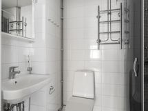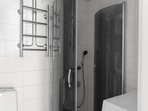 - Kylpyhuone: pesuallas, peilikaappi, bide-suihku, wc-istuin, suihku/suihkukulma (kääntyvät ovet), pyyhepatteri, ppk-liitäntä, kiinteä valaistus.