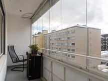 - sisään vedetty, lasitettu. Parvekkeen suunta: lounas