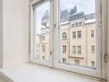 Alkuperäiset puulattiat, huonekorkeutta, leveätä ikkunalautaa ja tyylikkäitä rappukäytäviä.