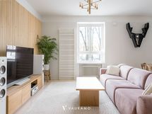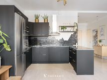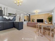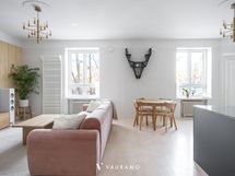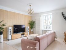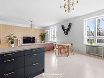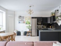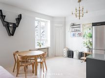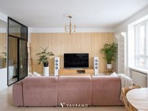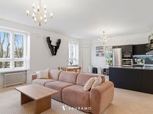 Asunto on alun perin ollut kaksio ja remontin yhteydessä avattu yhdeksi suureksi tilaksi. Lähes kolmen metrin huonekorkeus, isot ikkunat, vaaleat parkettilattiat ja väljät mittasuhteet luovat asuntoon harvinaisen avaruuden, jossa on jopa hienovarainen ripaus loft-tunnelmaa.