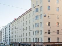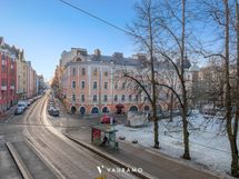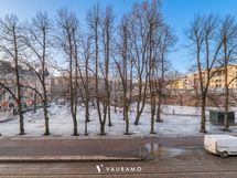 Facing Neitsytpuisto, at the corner of Tehtaankatu and Neitsytpolku, this apartment occupies the third floor of a 1929 building with elevator access.