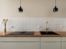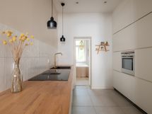 - Massiivitammitaso, integroidut koneet (uuni, jääkaappipakastin, astianpesukone), induktioliesi integroidulla liesituulettimella