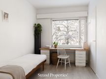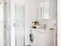 - Varustus: suihkuseinä, pesukoneliitäntä, wc-istuin, suihku, peilikaappi, kylpyhuonekaapisto.